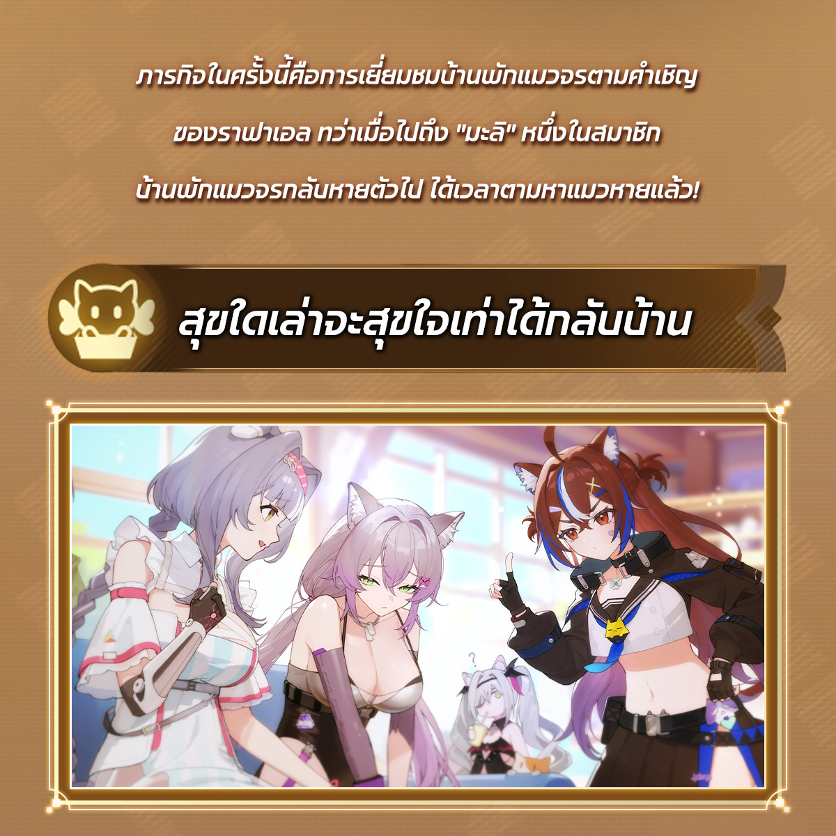 – รายละเอียดกิจกรรม: ของฝากแด่ผู้ตรวจการทุกคน ล็อกอินเพื่อรับของขวัญแจ่มจุก ต้อนรับอีเวนต์ 1.9 ‘ที่พักดวงใจ’ จากเหล่าเหมียวเลย!