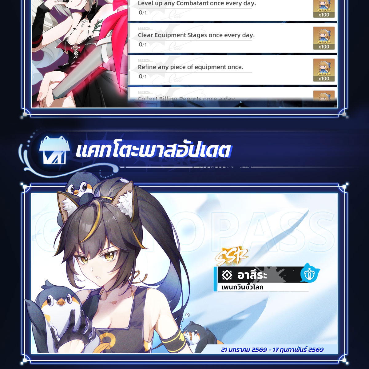 1. ในช่วงกิจกรรม การทำภารกิจรายวันและภารกิจจำกัดในกิจกรรม จะได้รับไอเทมคะแนนของกิจกรรมที่สอดคล้อง ภารกิจรายวันจะรีเฟรชเวลา 05.00 น. ของทุกวัน