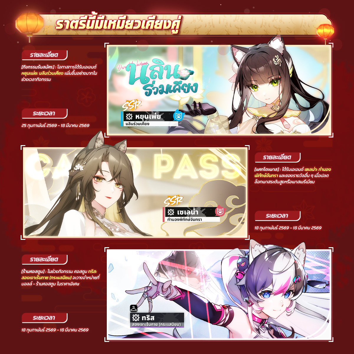 – ระยะเวลา: 18 กุมภาพันธ์ 2569 เวลา 05:00:00 น. – 11 มีนาคม 2569 เวลา 04:59:59 น.